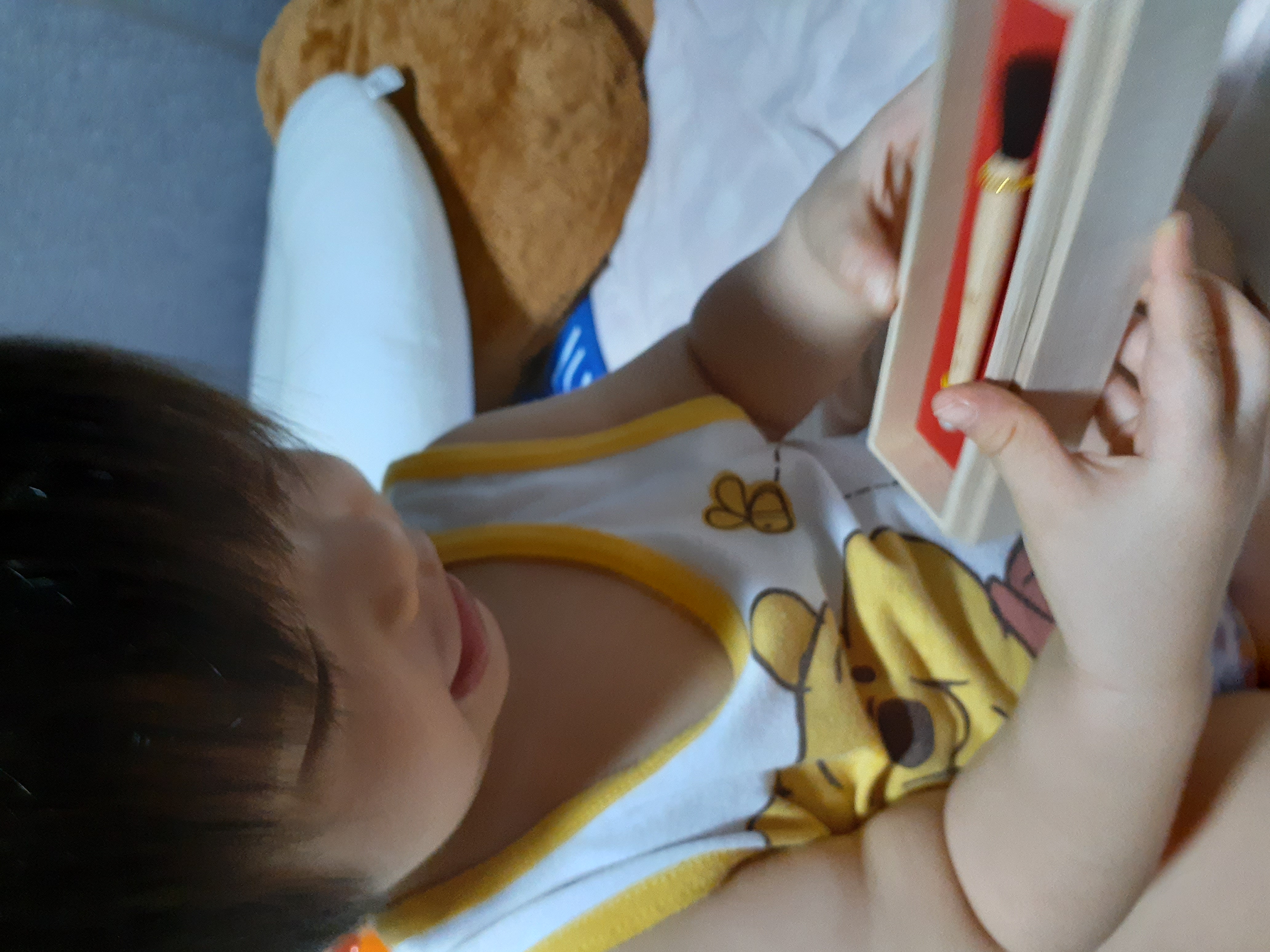 ママに抱っこしながらお利口さんにカットしてもらいました。 ケープが暑くてちょっとイヤイヤになってきたりケープをなめちゃって口の周り髪の毛だらけになってしまったりもありましたがそれもすてきな思い出です。 お兄ちゃん3人の時は筆の形状カールはなく、さばきでやっていたため初めてのカール。 やわらかい髪質が懐かしく、もう戻れないのでつくってよかったです。 4兄弟分並べて飾れたのが最高です。