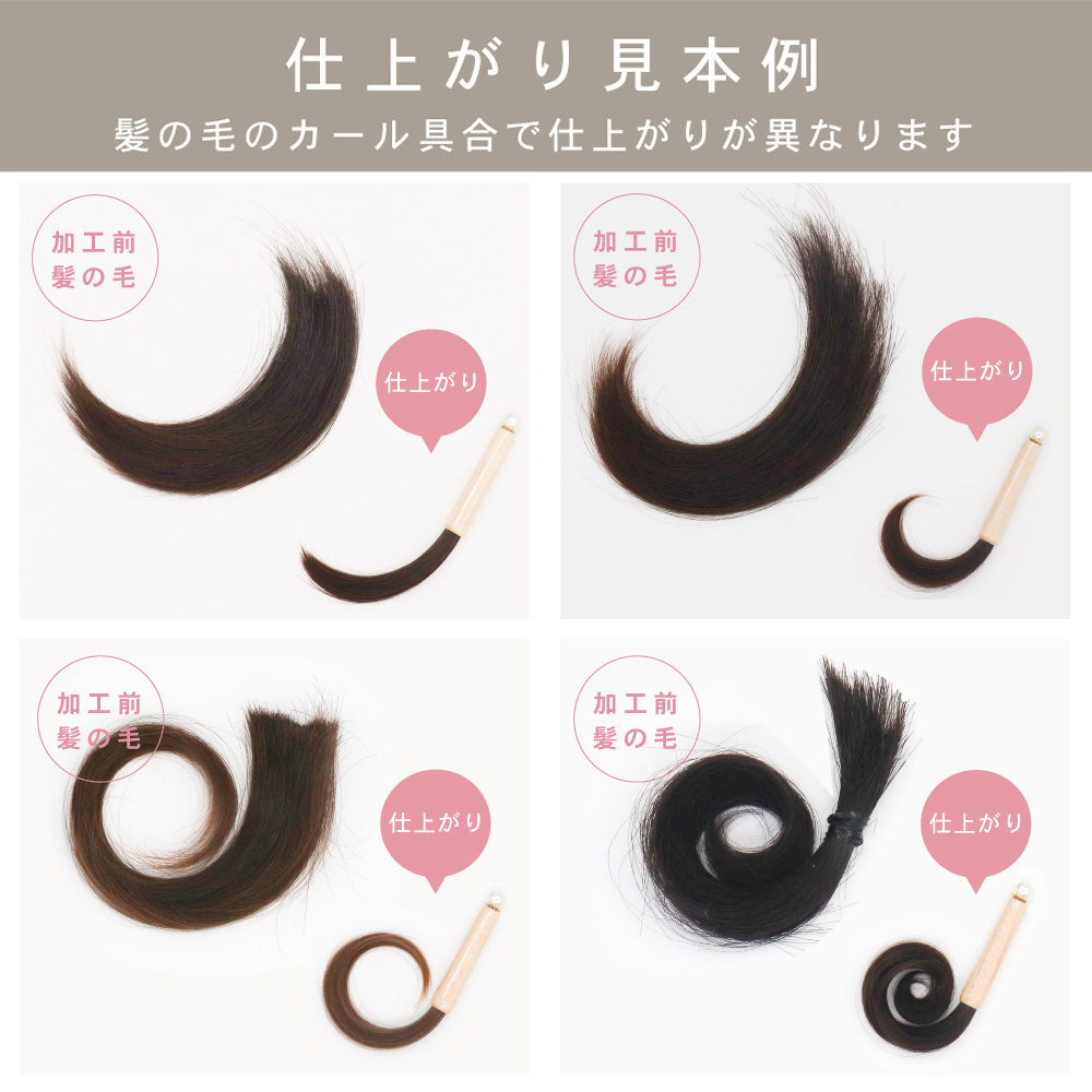 カールのある髪の毛を活かして製作するため、お送り頂く際には切り口と毛先が揃った状態でお送り下さい。
